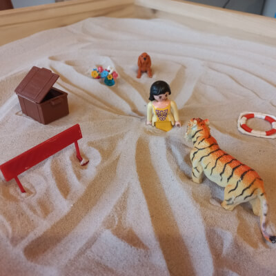 Sandplay of zandspeltherapie is een ervaringsgerichte methodiek waarbij met allerlei figuurtjes