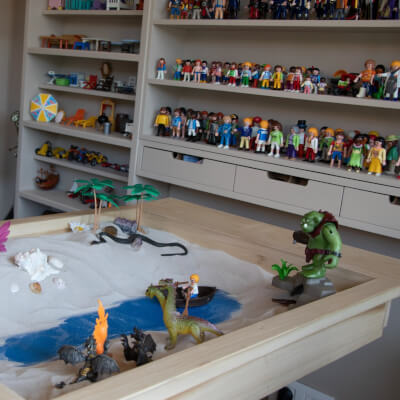 taferelen worden uitgezet in een zandbak. Gevoelens en ervaringen zijn soms