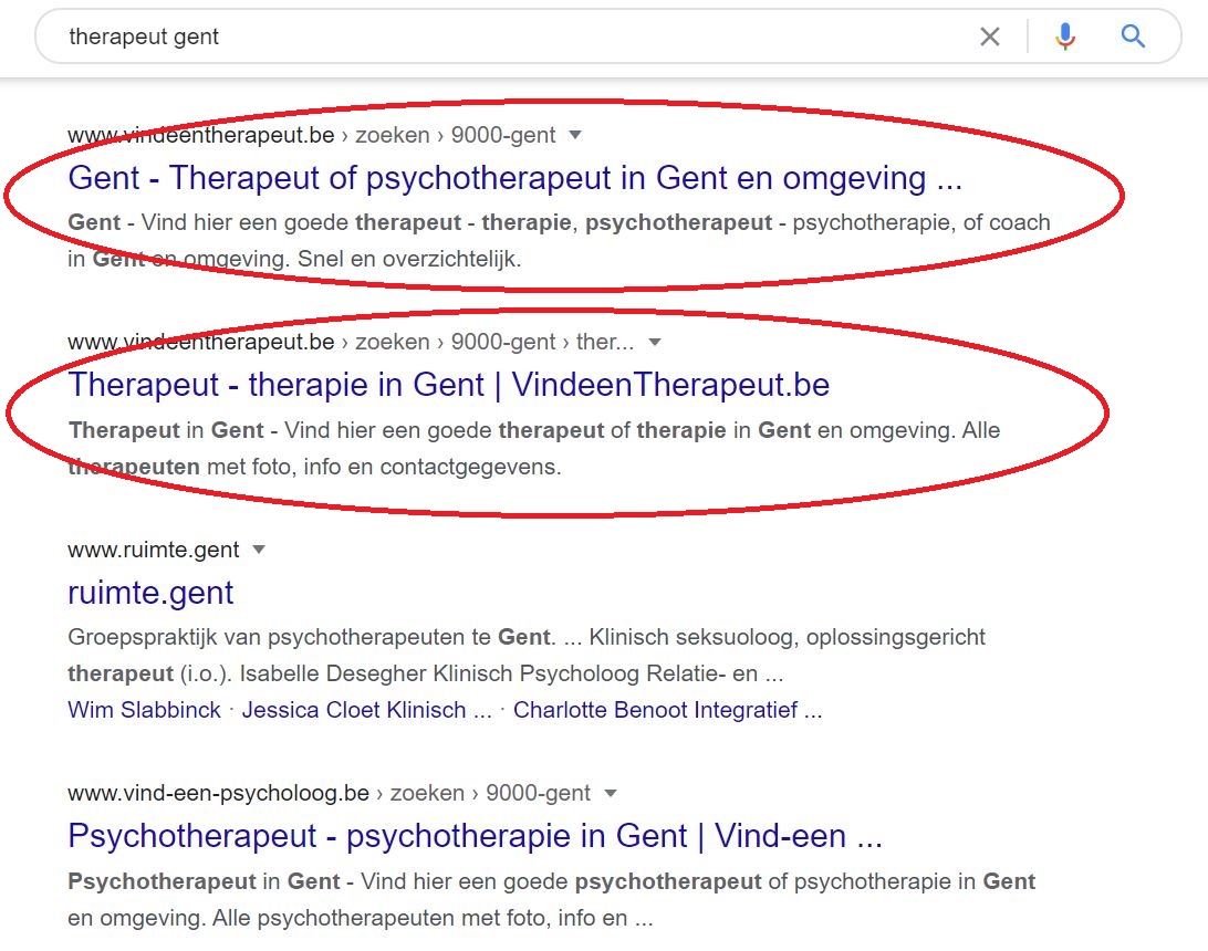 Probeer het zelf eens uit! Kijk zeker waar VindeenTherapeut.be gepositioneerd is, los van de dure advertenties.