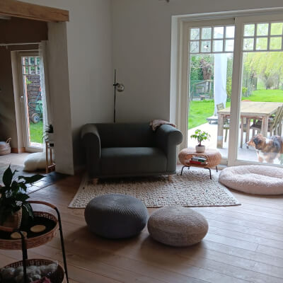 Ik ontvang je graag in mijn eigen huis. Een plekje in de woonkamer, waar rust en gezelligheid centraal staan. Of we maken tijdens ons gesprek een wandeling.