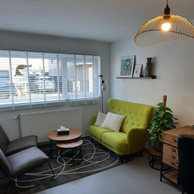 In de therapiepraktijk Groepspraktijk Therapie in de buitenlucht Groepsbegeleiding in het bedrijf Therapie via video callConsulttype